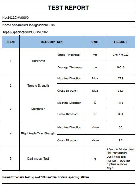2、The data for tensile strength and breaking elongation refer to the finished film product.